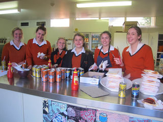 4. The Year 12s take a break from serving sausages.