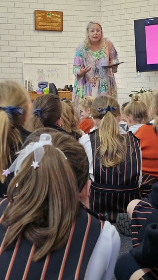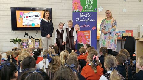 Junior School students were thrilled to welcome children's author, Yvette Poshoglian to Fahan yesterday. Yvette talked about books from her very popular series Ella and Olivia, providing background information from Starry Night, and her latest book, The New Baby. We were also lucky to see the cover of the next book in the series - but we are keeping that under our hat!Yvette shared her love of stories, acknowledging our first storytellers in lutruwita during National Reconciliation Week. She also discussed elements of narrative, showed images of her gorgeous Schnoodle, Archie, and invited the students to show off a few dance moves!